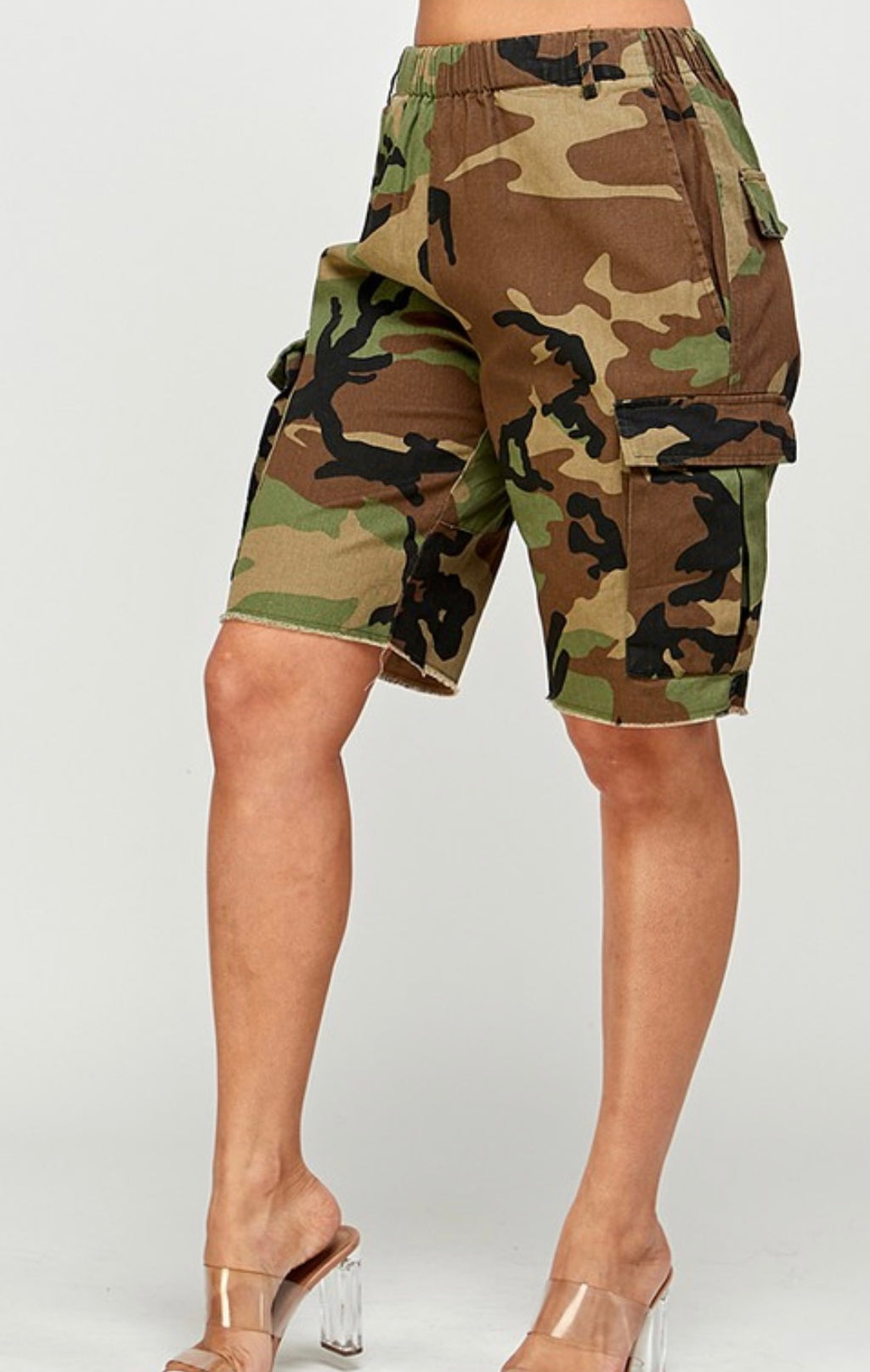 Camo Cargo Frayed Shorts