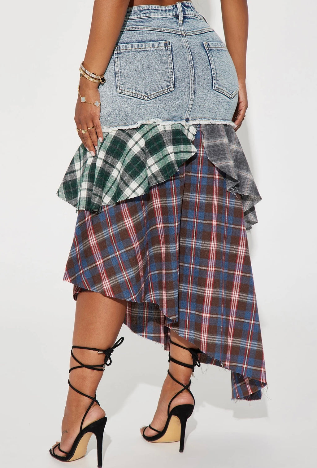 Denim+Plaid Skirt